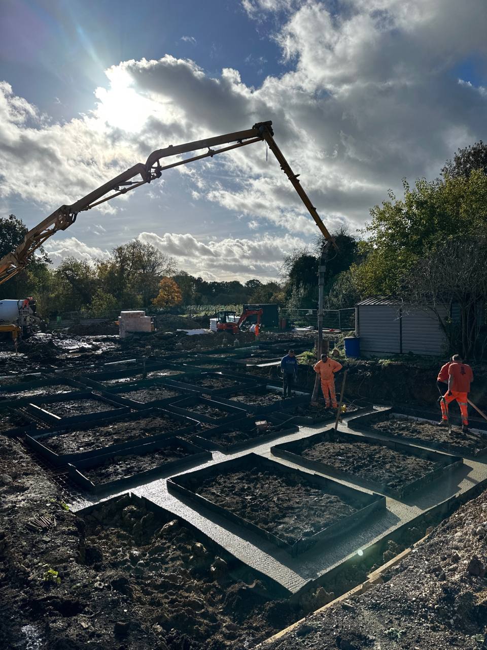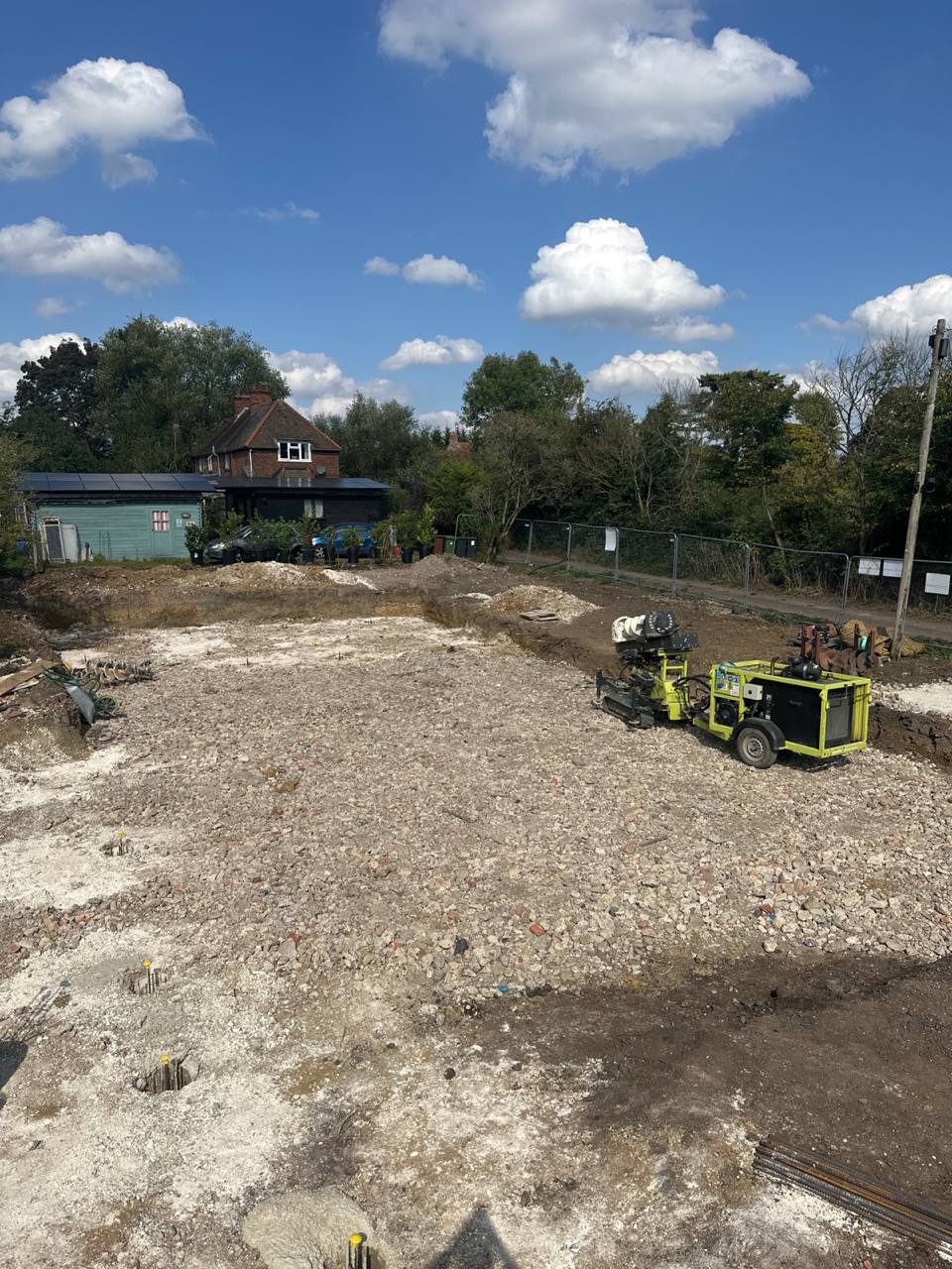 The foundation package also included installation of a 200mm thick reinforced concrete structural slab, providing a robust load-spreading base for residential superstructure works. The slab design ensured reliable performance across cohesive soils and chalk interface conditions.